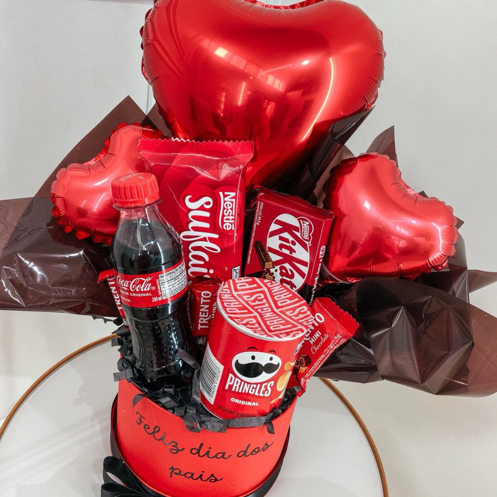Linda box personalizada para presentear no Dia dos Pais. Possui deliciosos snacks para um momento de descontração e comemoração.
